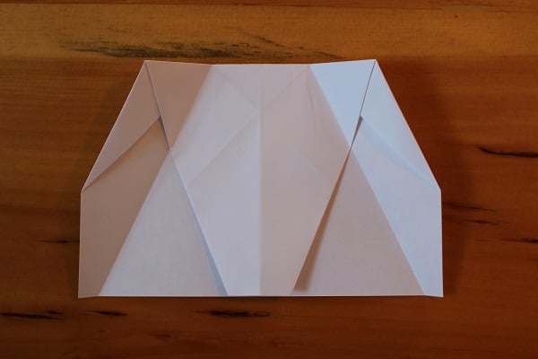 I've found that the plane performs best if the shape made by this downward fold is another perfect triangle.